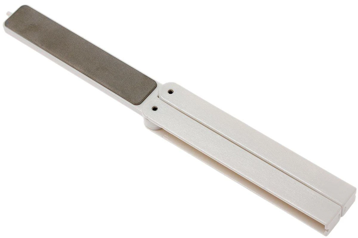Cette EZE-LAP EZE-Fold 530 est une pierre à aiguiser double face. Avec sur une face une surface d’aiguisage diamant de granulométrie superfine (1200 grit). Et sur l’autre face une surface d’aiguisage céramique. Son manche blanc se replie autour des pierres lorsqu’on la ferme. La pierre est ainsi parfaitement protégée. On peut ainsi toujours l’emmener avec soi en voyage, à la chasse ou à la pêche, c’est également pratique chez soi.