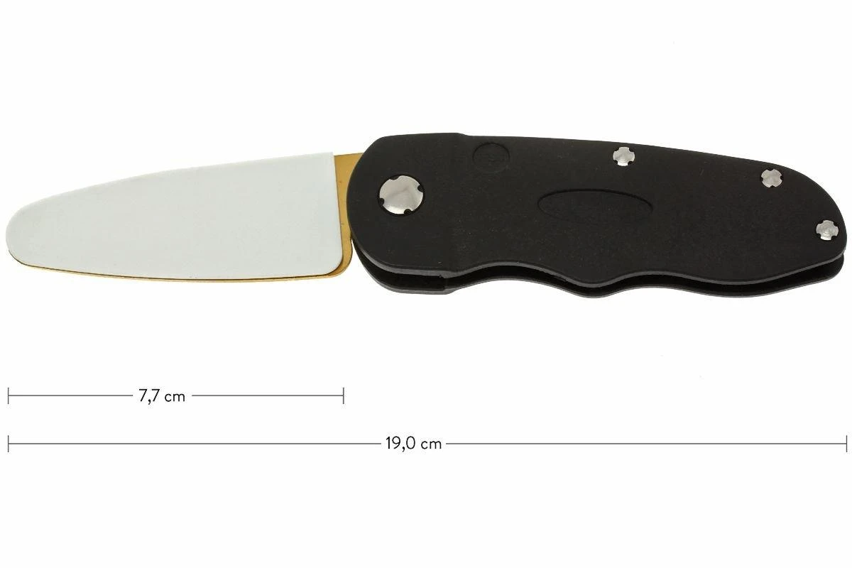 L’outil Flipstone est une pierre à aiguiser repliable qui peut être utilisé des 2 côtés. Les dimensions sont comparables à celles d’un couteau de poche. La FS4 est un petit peu plus grande que le FS3. On peut donc toujours l’avoir avec soi. La face jaune est une pierre en diamant avec une granulométrie de 25 micron. Elle sert à rétablir le tranchant d’une lame. L’autre face en céramique donne un tranchant maximal. Les deux pierres sont collées l’une à l’autre et donc toujours solidaires..