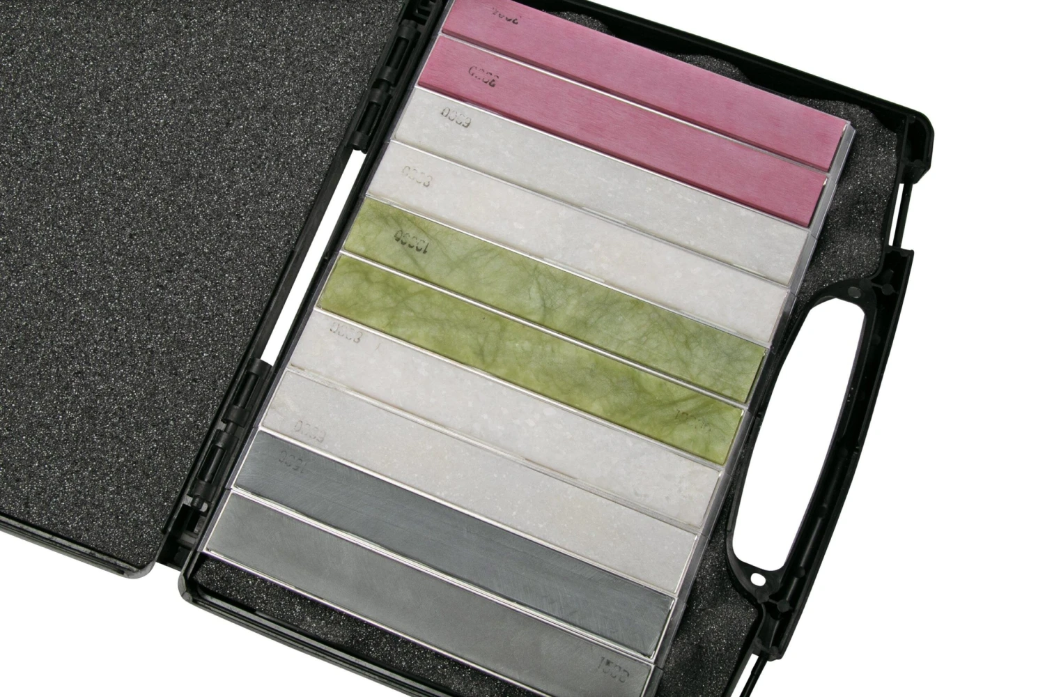 Le Competition Kit RIVAL est un set de pierres à aiguiser pour obtenir un tranchant optimal. Ce set contient 10 pierres. 5 lots de 2 pierres à aiguiser. D’une pierre à aiguiser au grain moyen Black Onyx, pour l’aiguisage d’un couteau émoussé, à une pierre ultrafine Emerald Oil Stone pour l’étape finale : le polissage du tranchant. Les pierres à aiguiser sont fixées sur une base en aluminium.