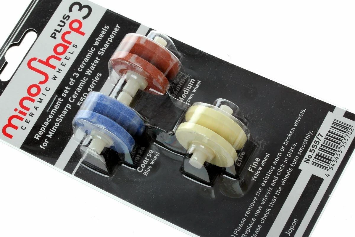 Ce set de rechange Global Minosharp contient trois roues d’aiguisage en céramique, convenant pour les aiguiseurs manuels de la gamme 550 de Global Minosharp. Ces affûteurs sont munis de roues de grain grossier, moyen et fin. Elles peuvent être remplacées indépendamment l’une de l’autre grâce à ce set de rechange.