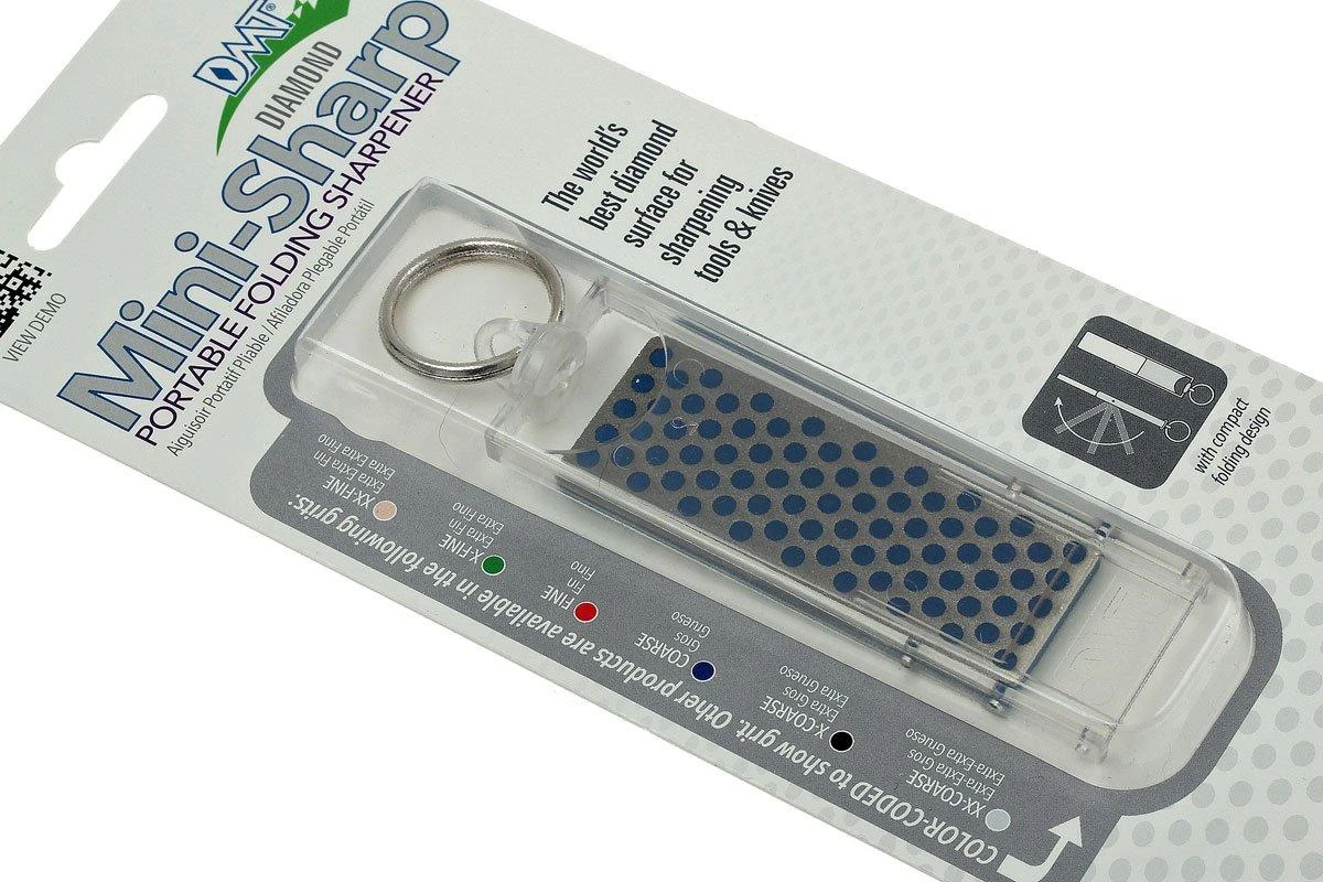 On accroche cette pierre à aiguiser compacte à son trousseau de clés afin de toujours avoir la possibilité d’aiguiser avec soi. La taille de la pierre est limitée bien sûr mais c’est tout de même une véritable pierre de qualité DMT. Elle peut donc rendre de grands services.