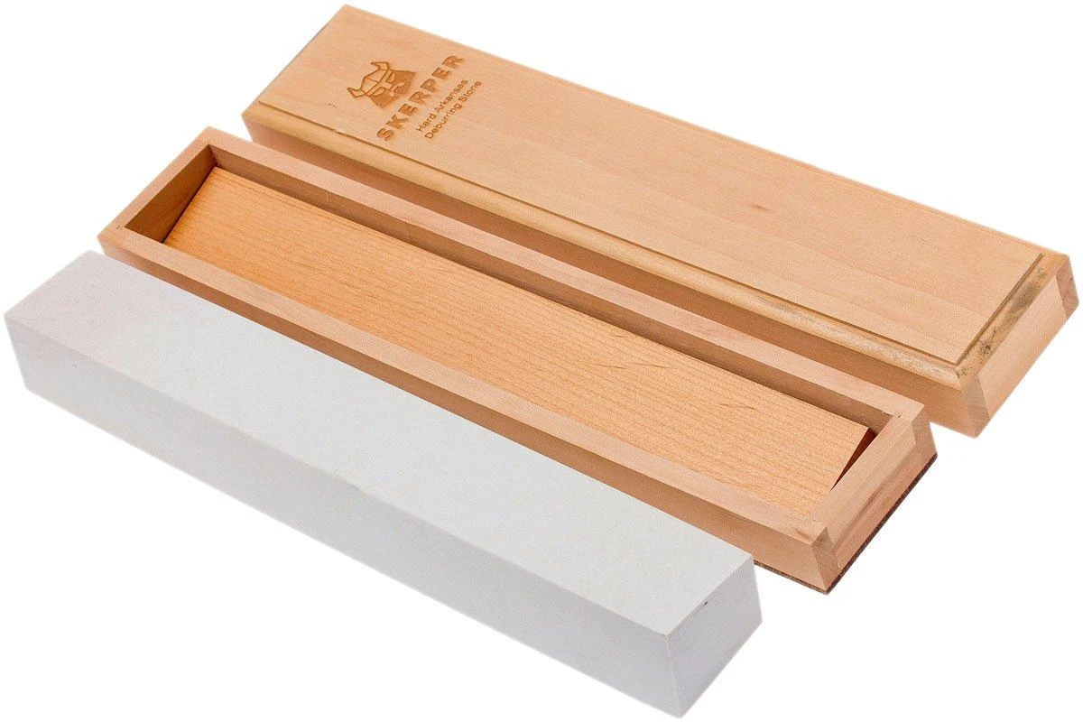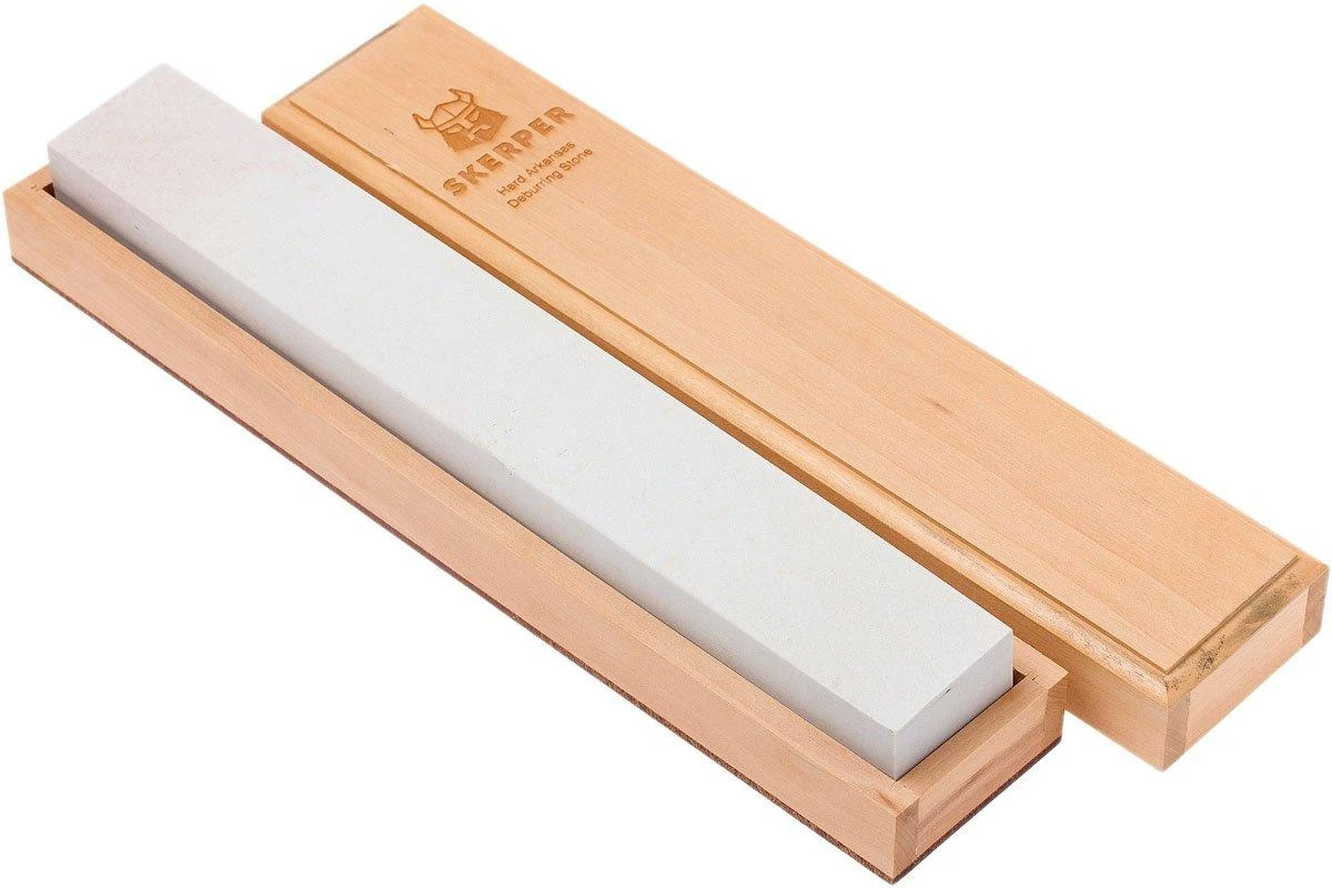 La pierre à ébarber Skerper Arkansas est faite pour les professionnels et pour les fanas de l’aiguisage. C’est une pierre massive d’une longueur considérable de 35,5 cm. Les pierres Soft Arkansas ont une granulométrie équivalente à une pierre à aiguiser synthétique de grit 800-1000. Pour obtenir un tranchant finement aiguisé.