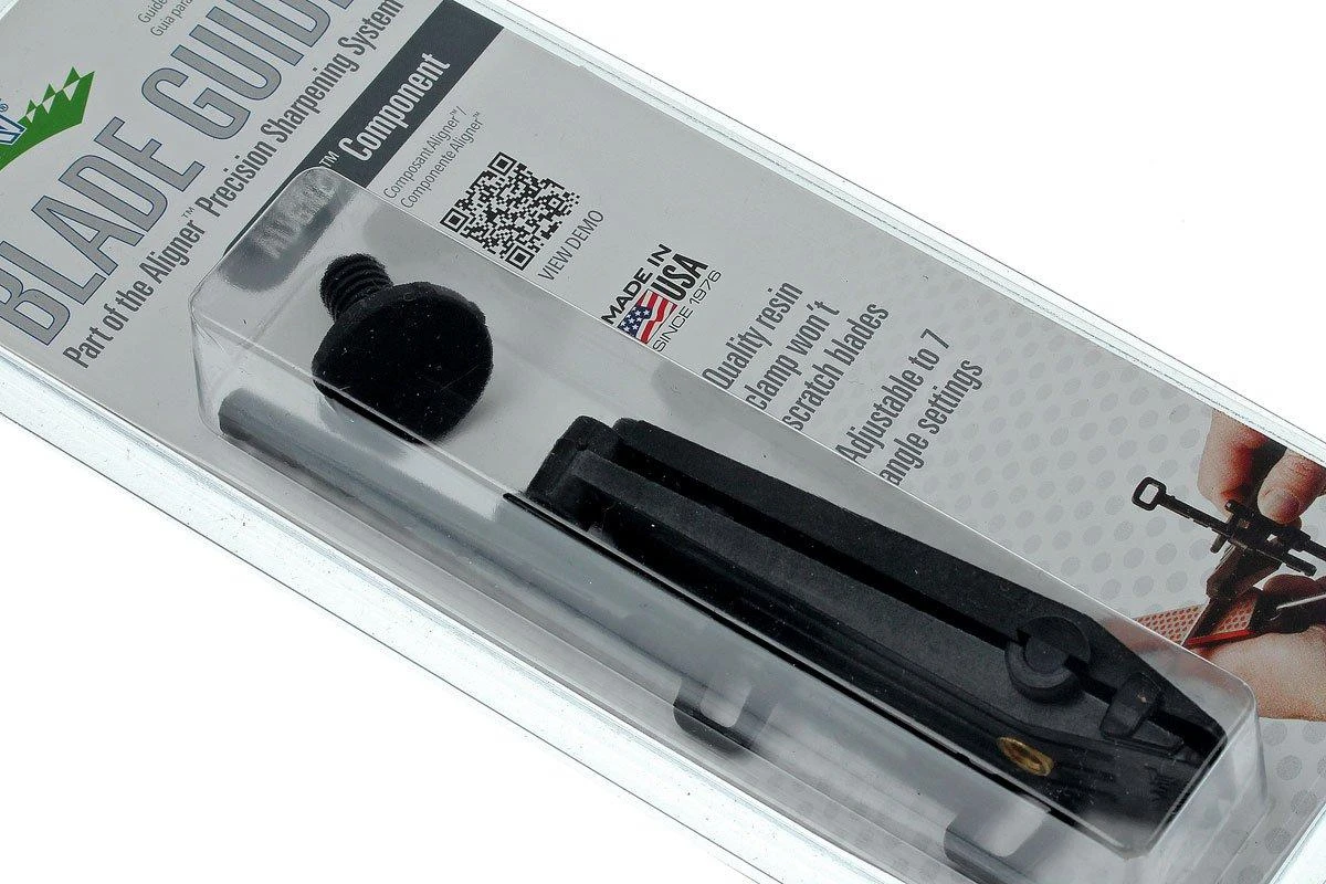 Grâce à la pince pour kit d’aiguisage Aligner DMT conservez toujours le bon angle d’aiguisage. Fixez votre lame, puis réglez le guide d’aiguisage sur l’angle qui convient. La pince ne raye pas votre lame. Si vous souhaitez quand même être prudent, vous pouvez rajouter un morceau de bande adhésive de peintre sur votre lame.