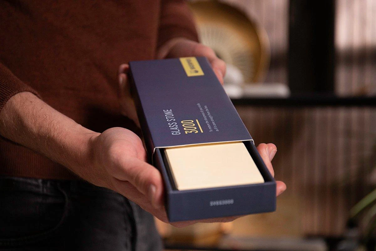 Avec cette pierre à aiguiser Skerper Glass Stone granulométrie 400 obtenir rapidement des résultats. La granulométrie de 400 assure un retrait rapide de la matière, et vos couteaux émoussés sont nouveau tranchants ! Vous avez terminé d’aiguiser avec du 400 ? Il est temps de passer à la pierre à aiguiser Skerper Glass Stone 1000 pour un aiguisage encore plus pointu.